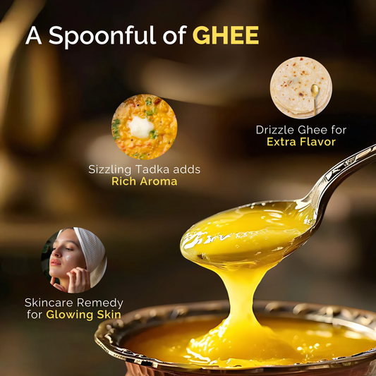 Buy 500ml A2 Desi Gir Cow Ghee Bilona Method & Get Organic Kashmiri Raw Honey (250gm) Free
